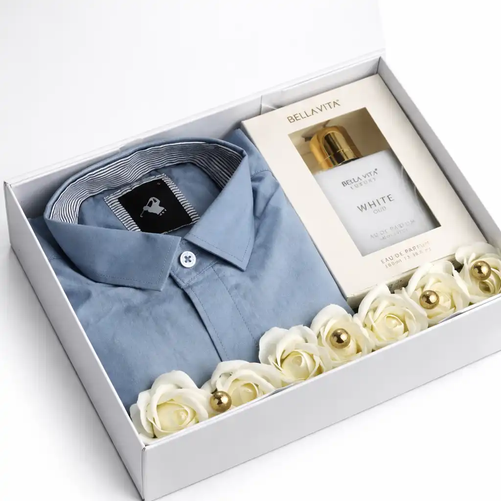 A subtle, elegant combo of a premium shirt and signature fragrance — for a calm, sophisticated vibe. What’s Inside: Premium shirt Perfume Decorative flowers Elegant gift box