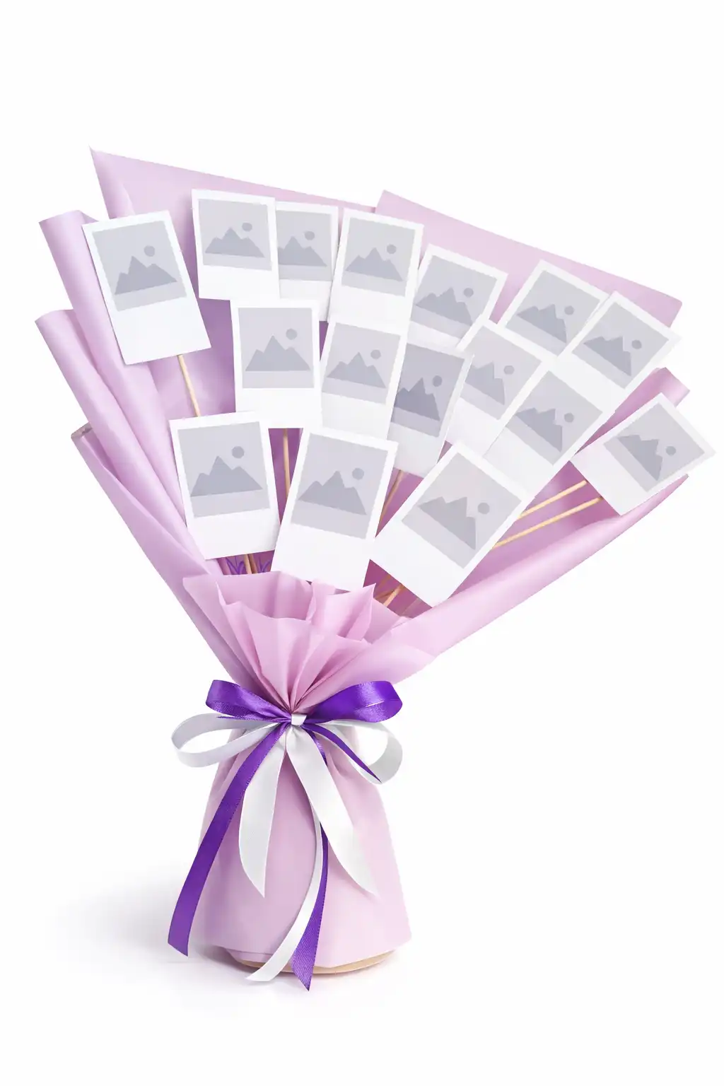 A cute pastel bouquet filled with mini photo prints, perfect for turning your favorite memories into a heartfelt and personalized gift.