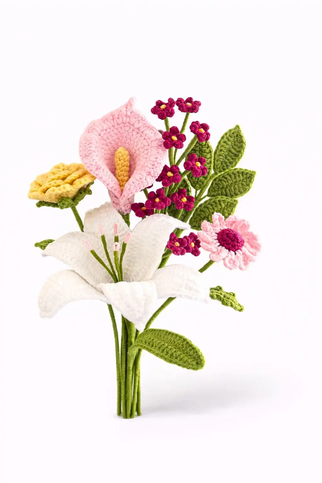 - Mixed crochet flowers (lily, calla lily, small florals)