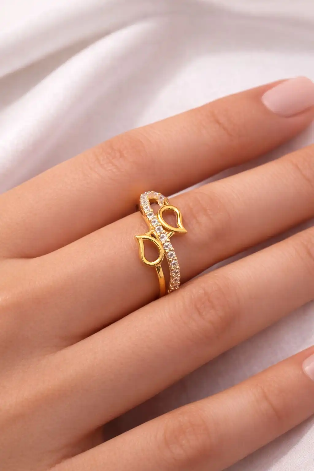 A graceful infinity-inspired gold ring with delicate shimmer—symbolizing endless elegance and timeless beauty.