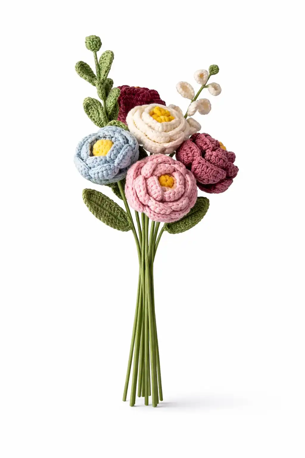 A cute mix of pastel crochet blooms arranged like a mini garden — aesthetic, trendy, and perfect for Gen Z gifting.