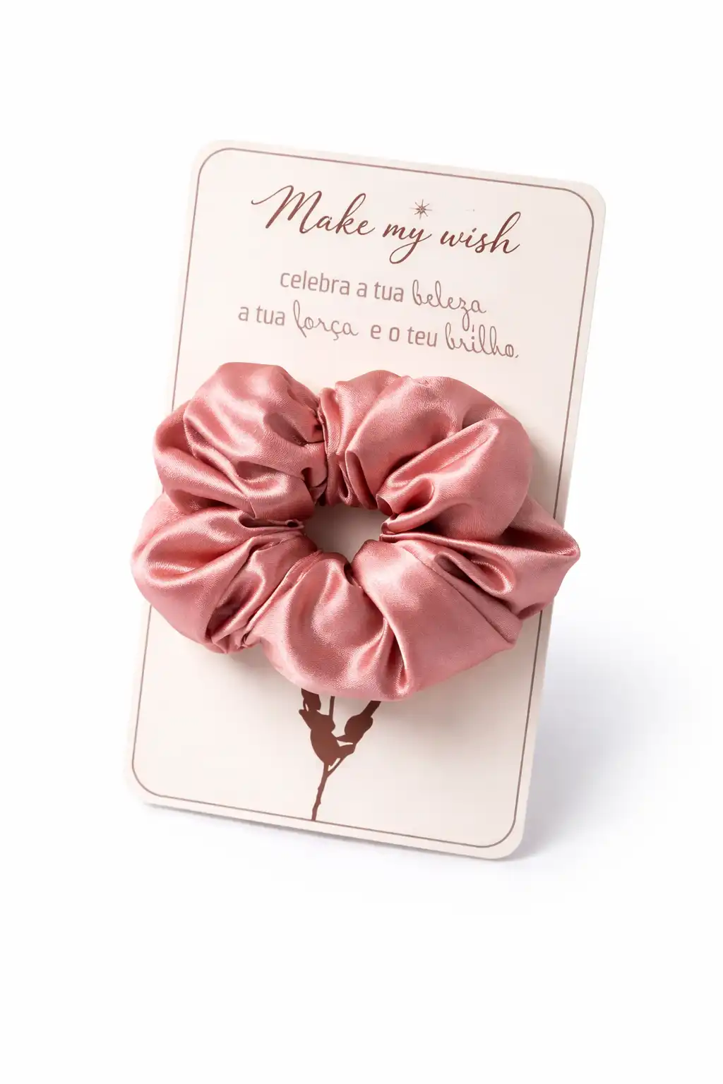 A soft satin scrunchie with a dreamy blush finish—perfect for adding a touch of elegance and everyday charm to any look.