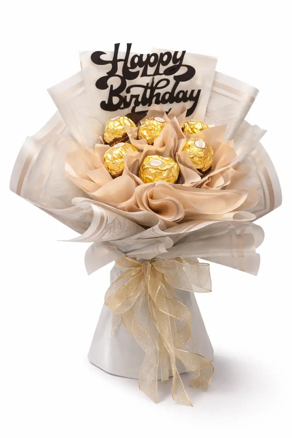 A classy bouquet of golden chocolates with a birthday touch — made to make their special day feel extra luxurious and memorable. 🎉