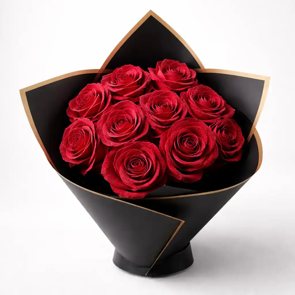 Elegant red roses with black wrapping