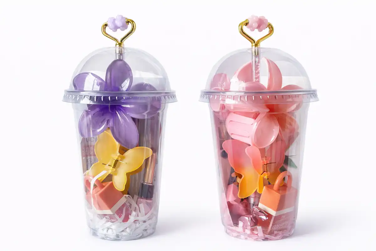 2pcs charming cup filled with butterfly clips, cute mini accessories, and sweet surprises—perfect for gifting a playful and colorful vibe.